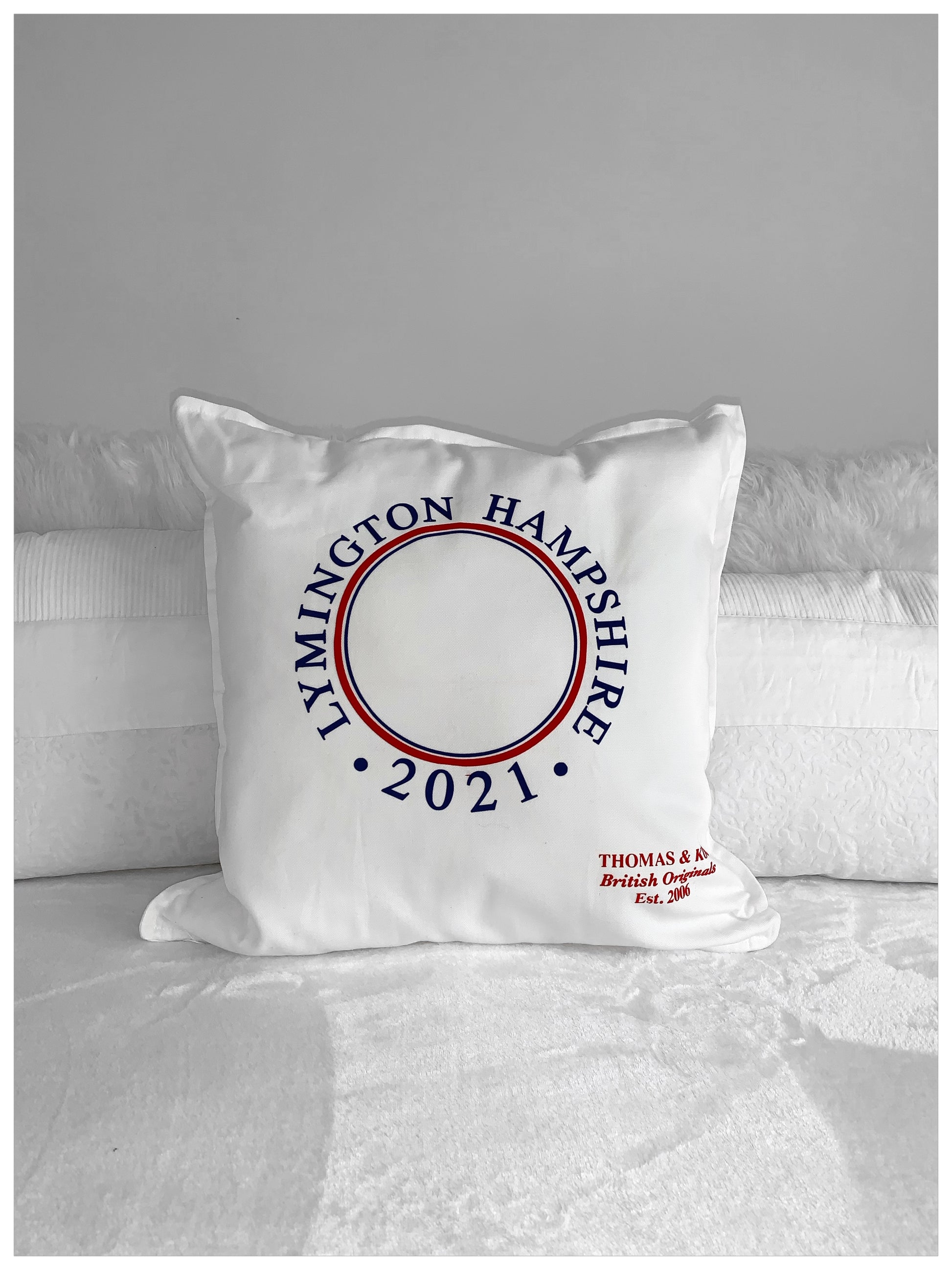 Choose a place and year for a bespoke cushion cover ... although, if you would like "Lymington Hampshire 2021", then that's OK too!